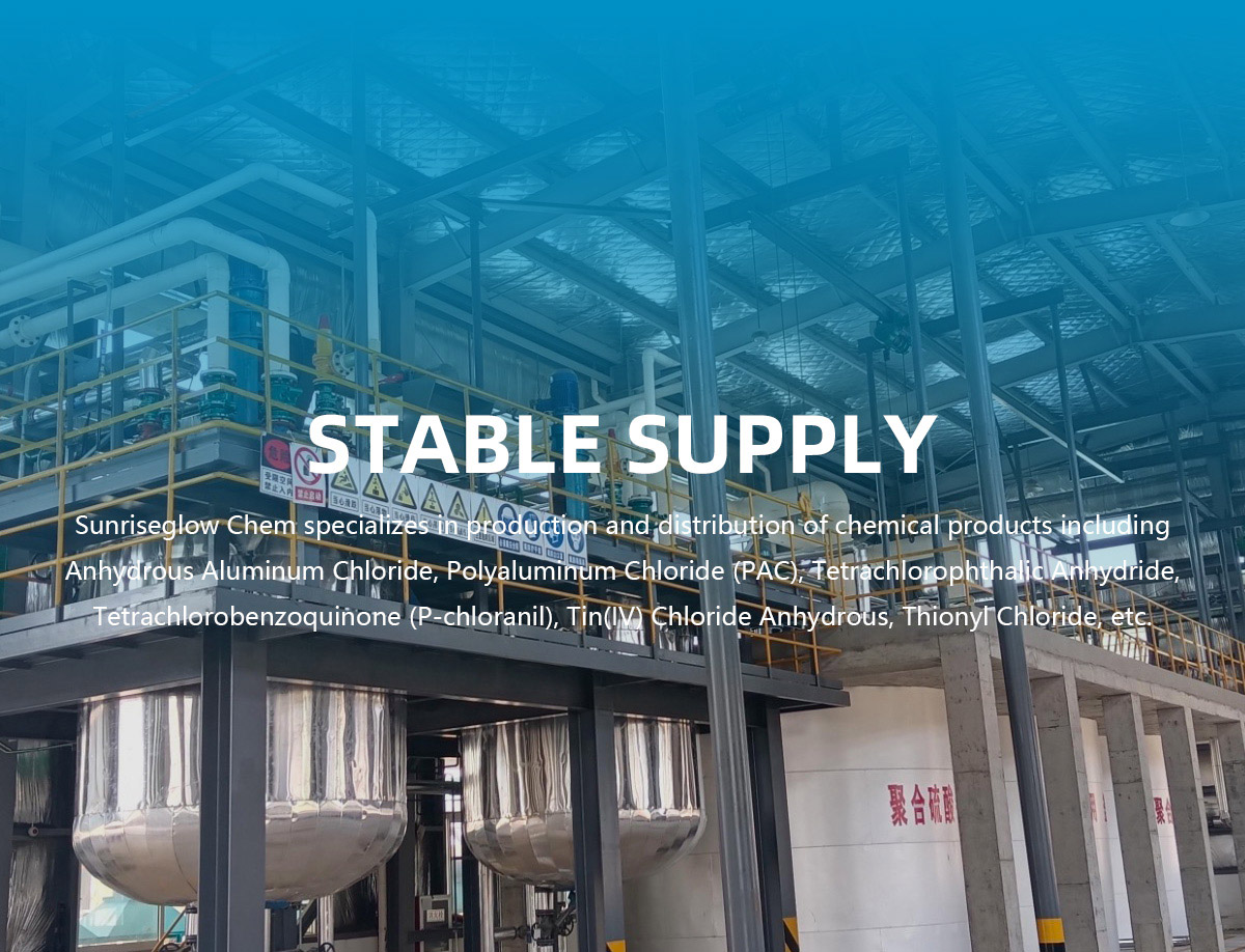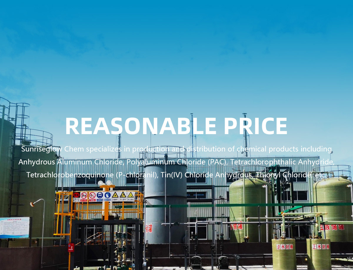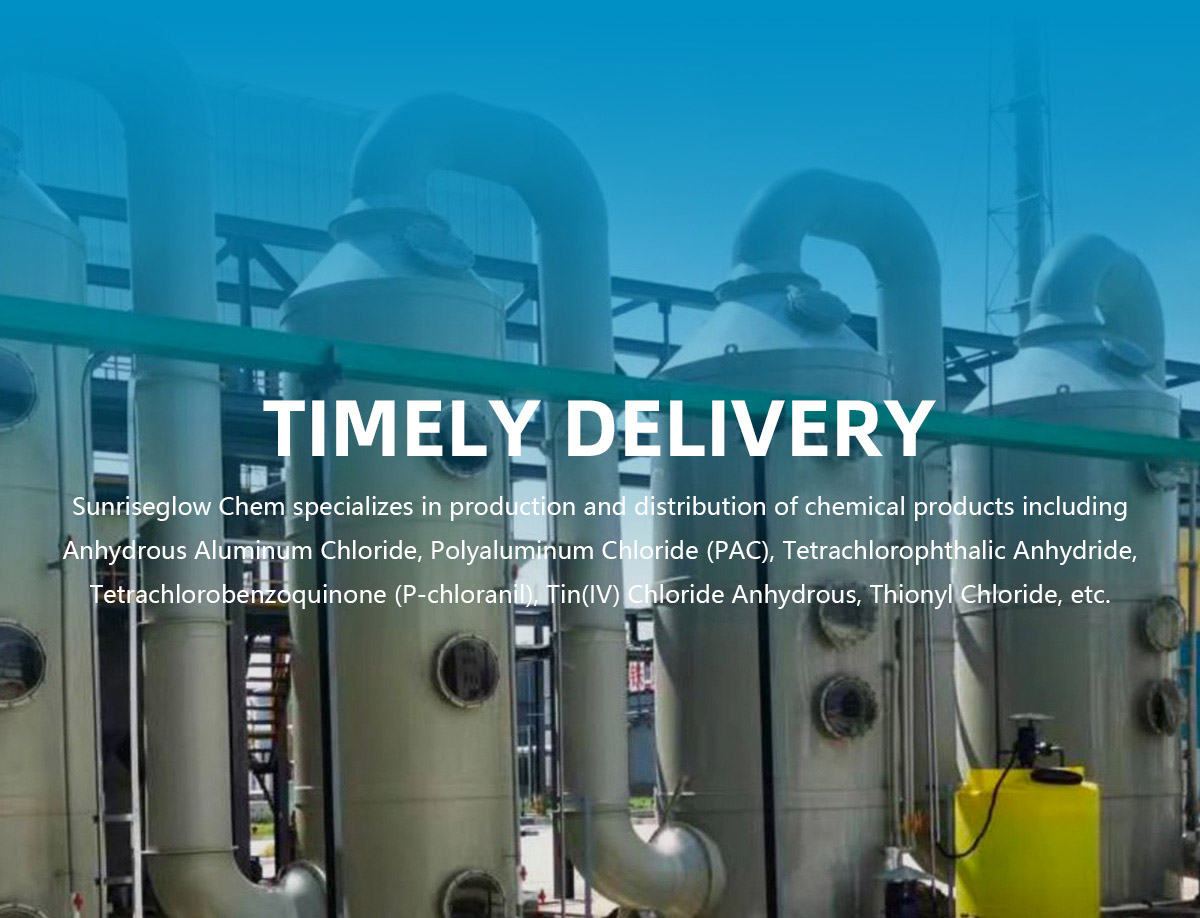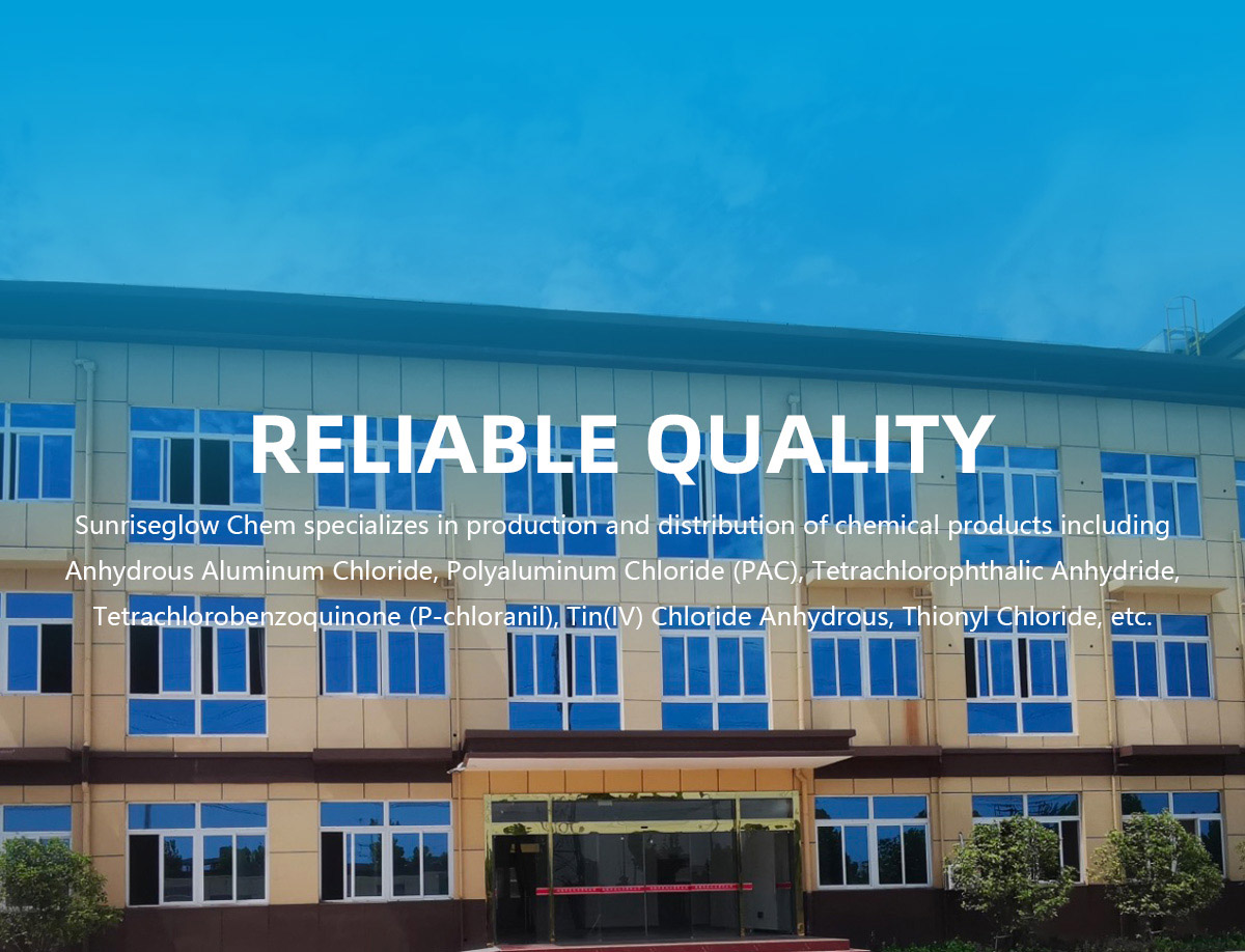 Sunriseglow Chem specializes in production and distribution of chemical products including Anhydrous Aluminum Chloride, Polyaluminum Chloride (PAC), Tetrachlorophthalic Anhydride, Tetrachlorobenzoquinone (P-chloranil), Tin(IV) Chloride Anhydrous, Thionyl Chloride, etc.
